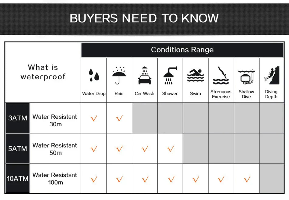 Wasserdicht bis 3ATM – geeignet für Händewaschen und Regen