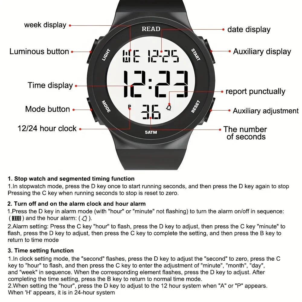 Feature: Waterproof Multi-Function Electronic Watch,Women's Electronic Watch,Watch With High-Resolution LED Definition Display