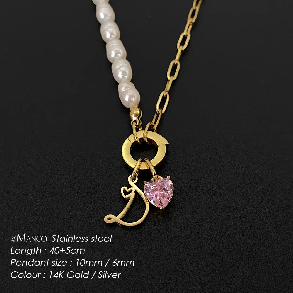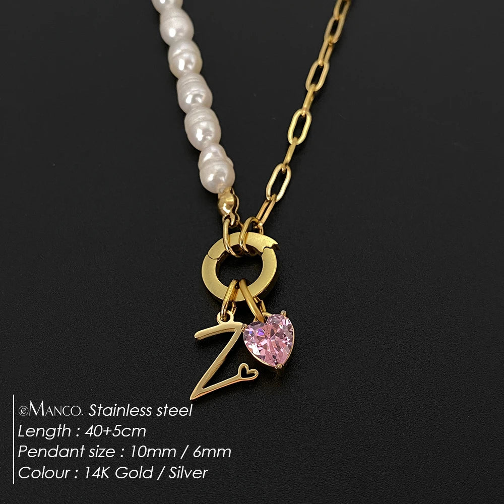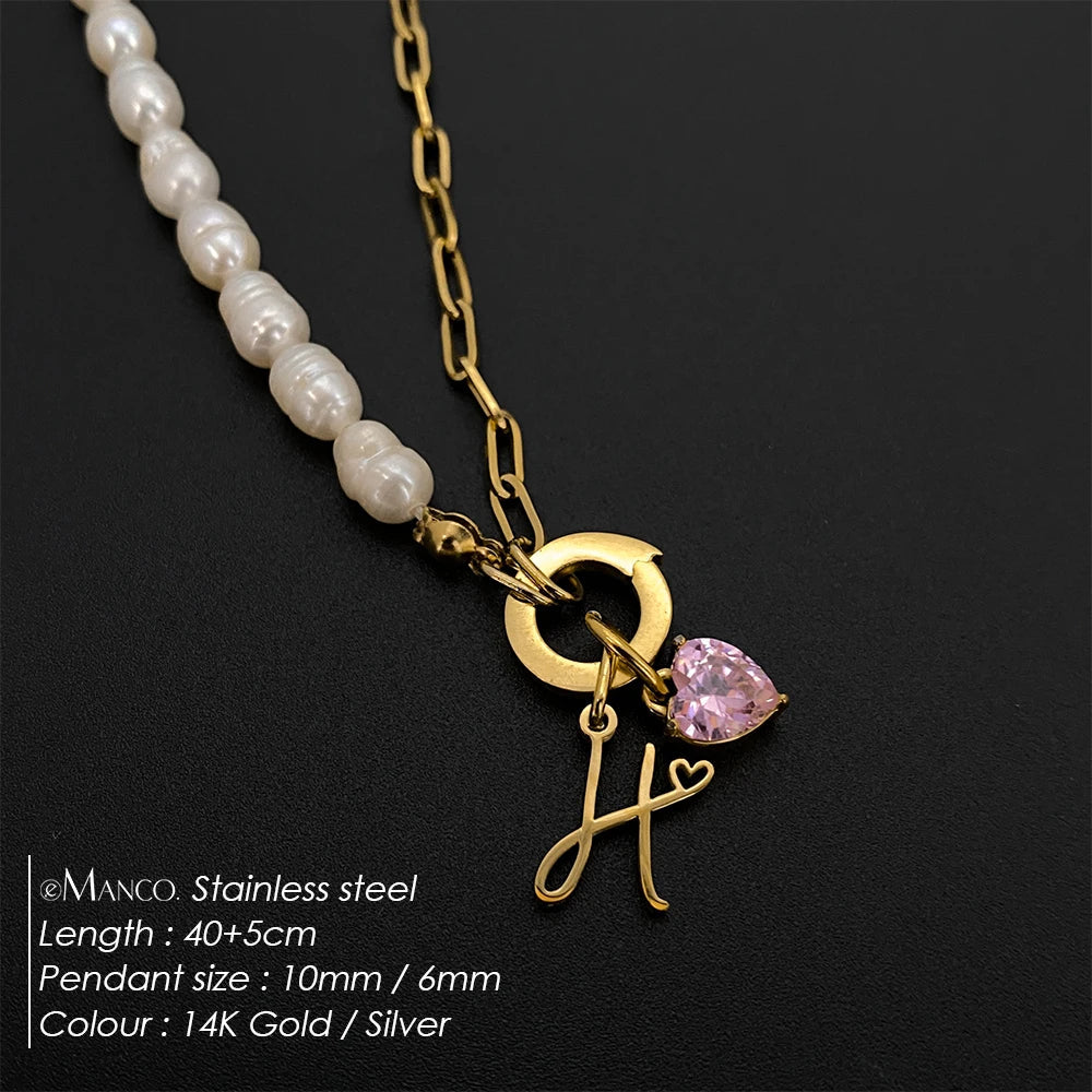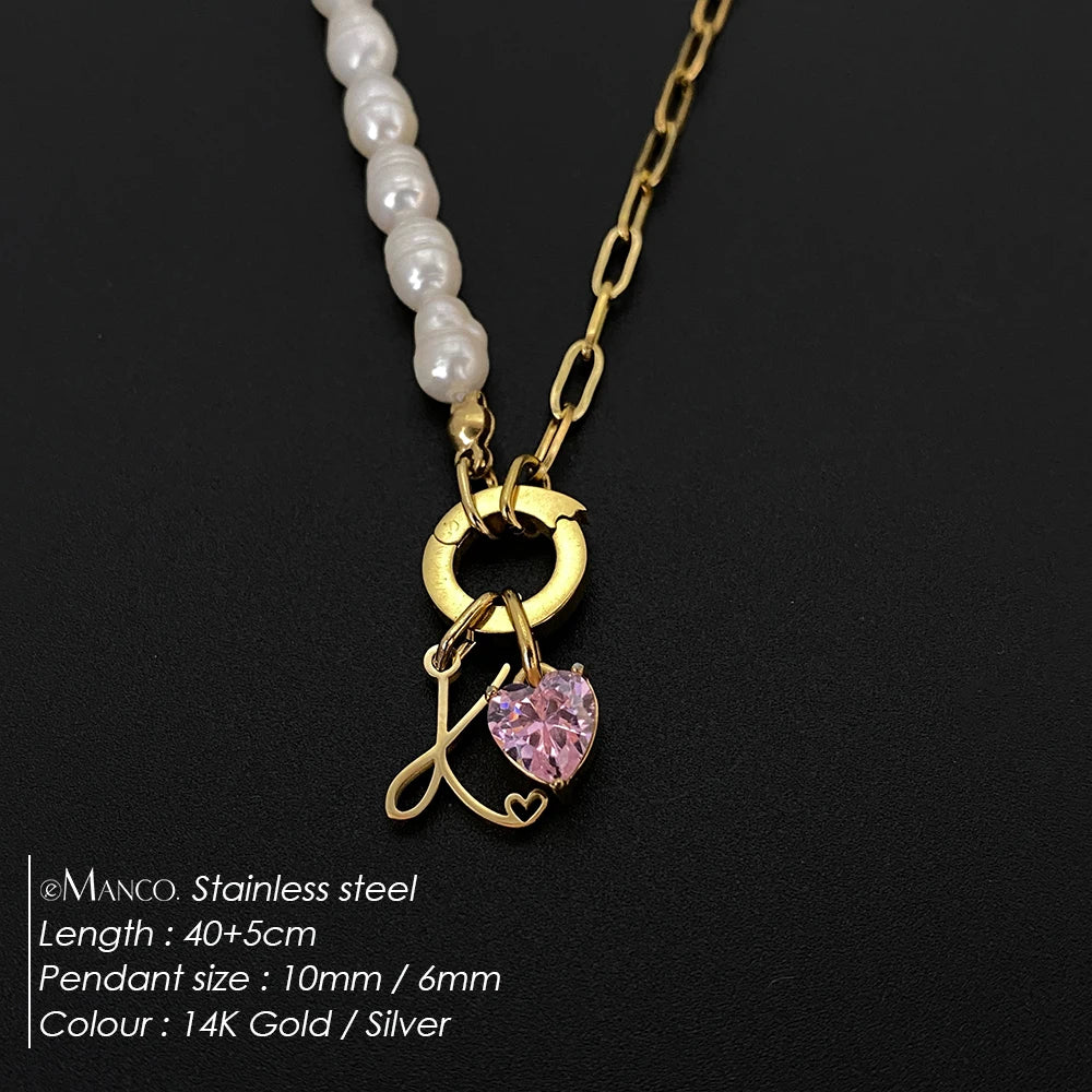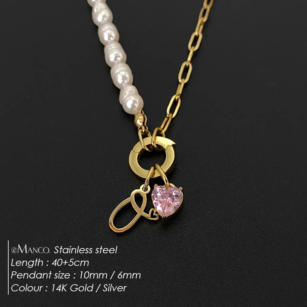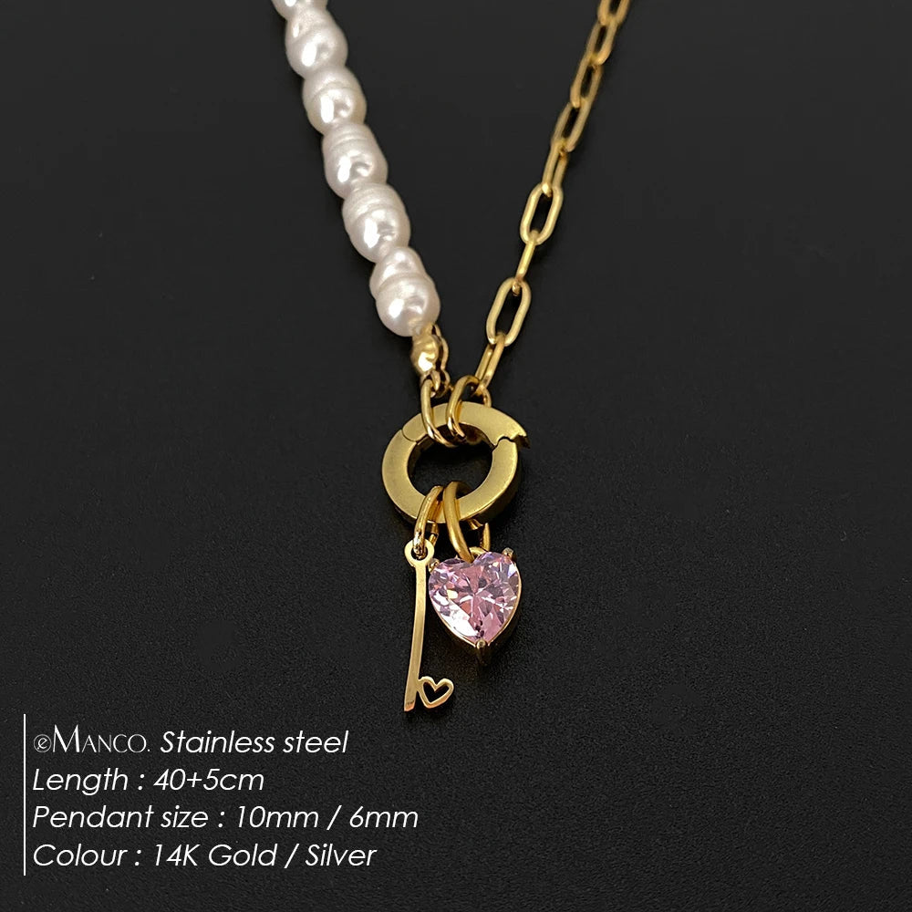 eManco Natural Freshwater Pearl Heart Stainless Steel Cubic Zirconia Pendant Necklace Aesthetic Luxury Chain Jewelry Gift – Halskette verbindet klare Linien mit feiner Detailarbeit. Gefertigt aus hochwertiger Edelstahl (hypoallergen) für langanhaltenden Glanz und angenehmen Tragekomfort. Verfügbare Größen: 40 Extend 5CM.