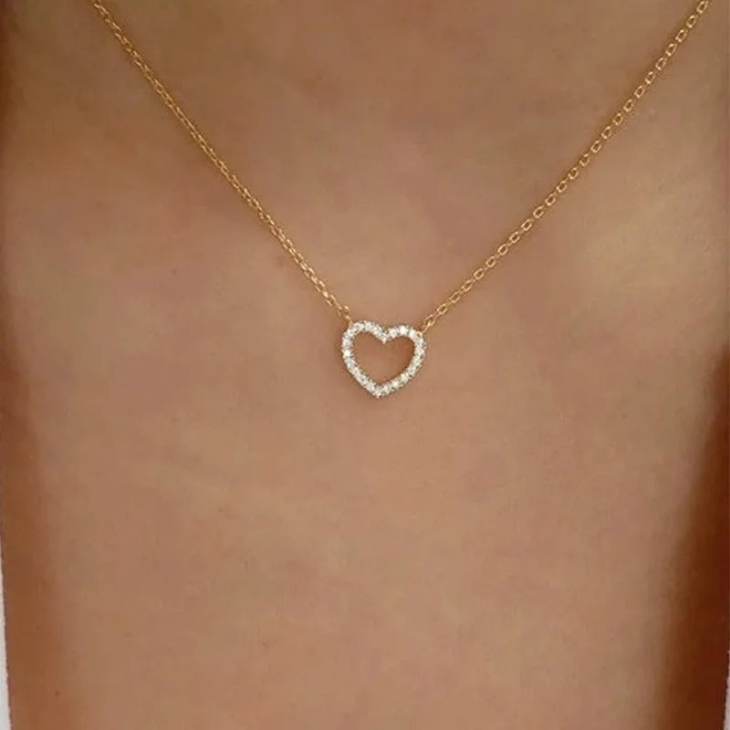 Simple Double Heart Pendant Necklace Couple Stainless Steel Choker Gold Color Chain Wedding Party Friends Jewelry Gift – Halskette