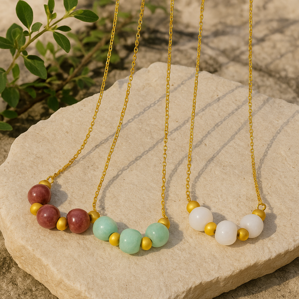 Naturstein-Halskette – Goldene Eleganz mit Charakter