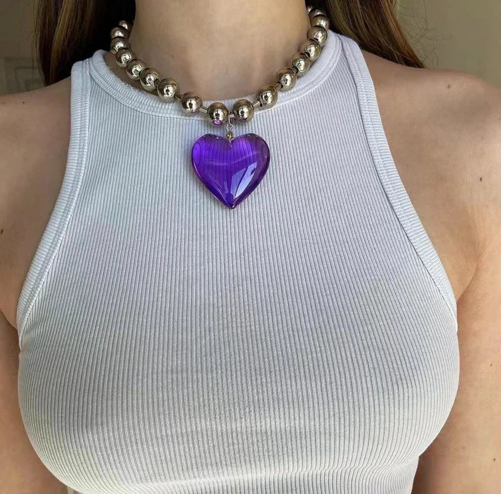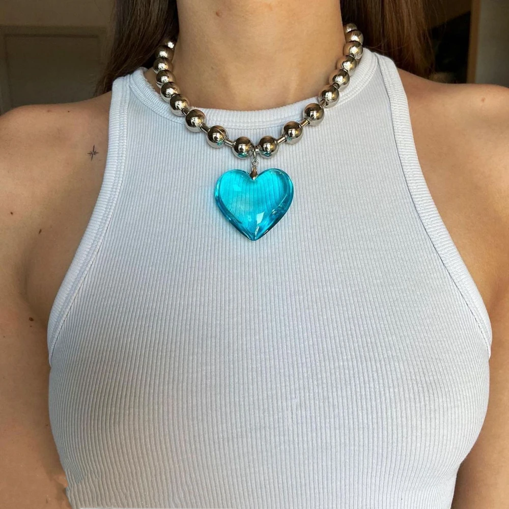 Name: Grunge Fashion Glass Heart Pendant Necklace