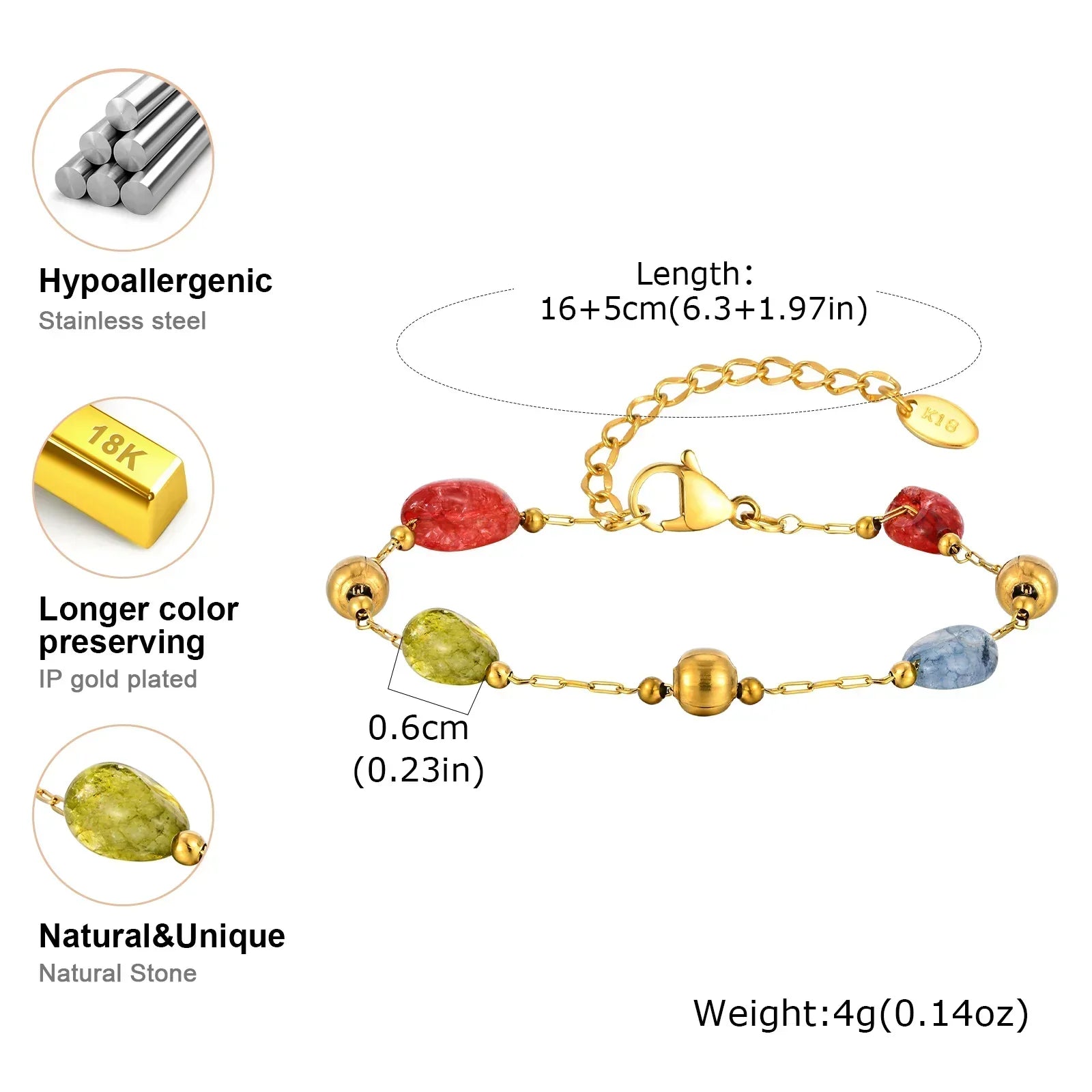 bracelet length: 16cm-21cm (6.3inch - 8.27inch)