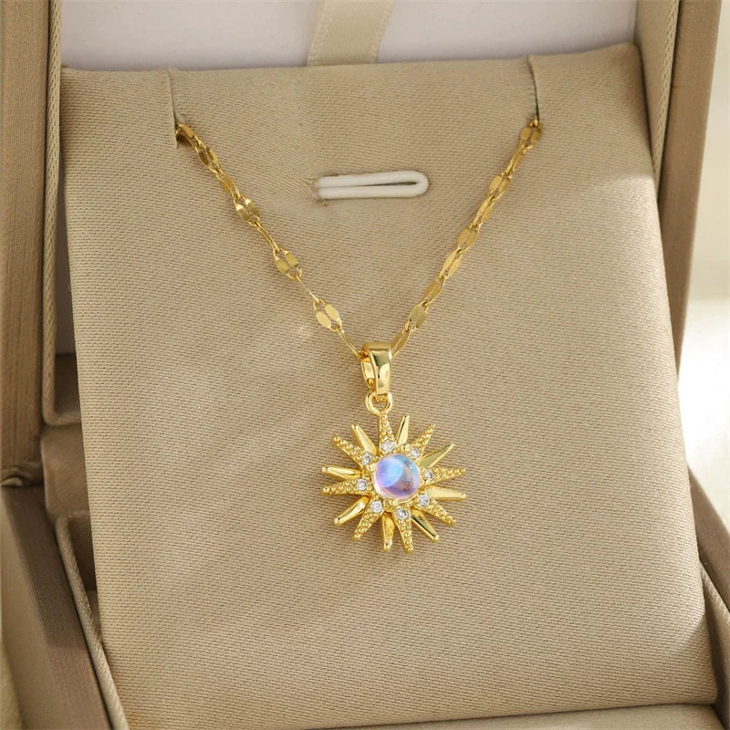 Sun Necklace, Woman Jewelry ,Fashion Wedding Party Accessories Gold Plated, Opal Sun Pendant ,Rapunzel Choker, Gift